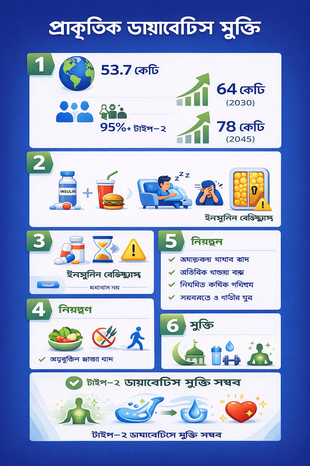 বাস্তবতা হলো, ৯৫% এর বেশি ডায়াবেটিস রোগী টাইপ–২ ডায়াবেটিসে আক্রান্ত এবং এই বিশাল সংখ্যক মানুষ দিনের পর দিন ডায়াবেটিস নিয়ন্ত্রণের উপায় খুঁজে খুঁজে ক্লান্ত। কিন্তু অনেকেই জানেন না, টাইপ–২ ডায়াবেটিস শুধু নিয়ন্ত্রণযোগ্যই নয় বরং সম্পূর্ণ নিরাময়যোগ্য।